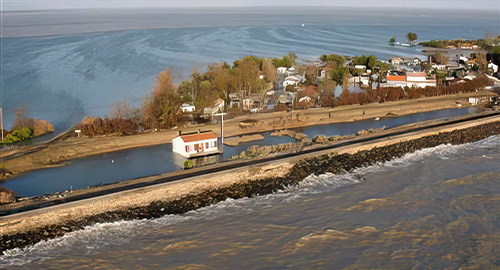 La alerta fue dada con anticipación en todas las radios francesas, los primeros vientos llegaron como a las 4 de la mañana soplando a más de 120 km por hora azotando la costa Vendeana, esto coincidió con una lluvia persistente y un alto coeficiente de marea, las olas empezaron a encabritarse haciendo ceder un dique próximo a las casas de las apacibles ciudades balneario de “La Faute-sur- mer” y de “Aiguillon-sur-mer” a 500 km. de Paris, el océano entró en las habitaciones en medio de la noche sorprendiendo a aquellos que tomaban precauciones y a quienes dormían profundamente, en un cuarto de hora el agua subió hasta el techo. Algunos pudieron salvarse nadando hacia casas vecinas, otros alcanzaron a subirse al tejado y esperar allí ayuda, los de mayor edad murieron ahogados en sus camas…